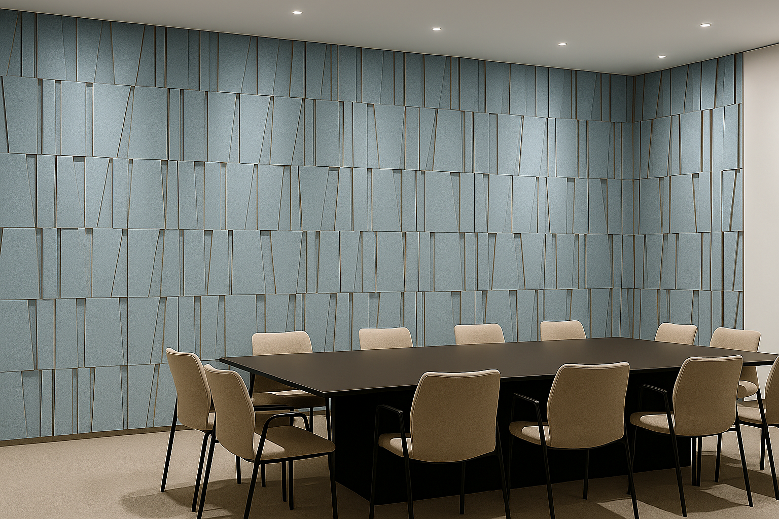 Akustik çözümler sadece duvarlarla sınırlı değildir. FeltBi T24 keçe asma tavan panelleri, geniş hacimli alanlarda yankıyı ciddi oranda azaltır.