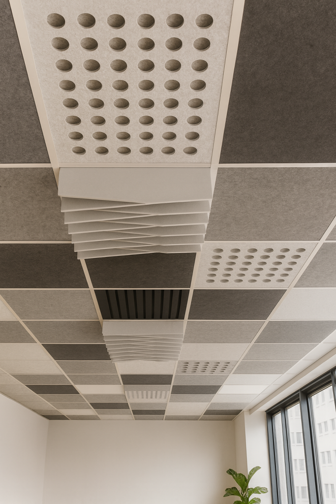 FeltBi çözümü: duvar + tavan kombinasyonu (baffle/kanopi gibi)
