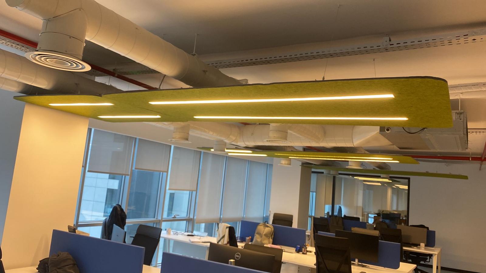DP Aydınlatma, sadece akustik bir panel değil, aynı zamanda dekoratif bir aydınlatma objedir. Tavan konseptine entegre