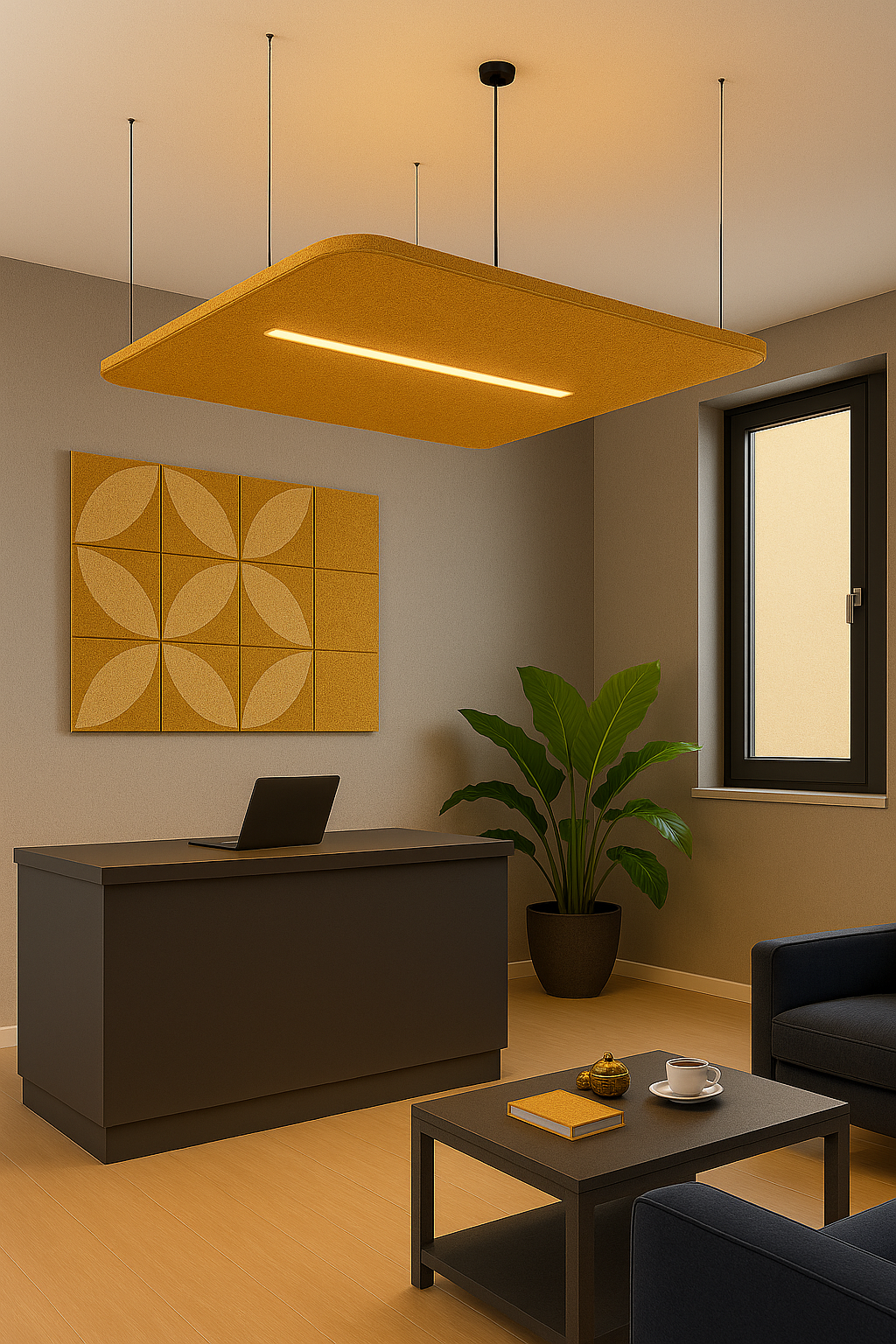 KP Aydınlatma, yüksek performanslı, ses emici malzemelerden yapılmış dikdörtgen bir paneldir. Ticari alanların akustik