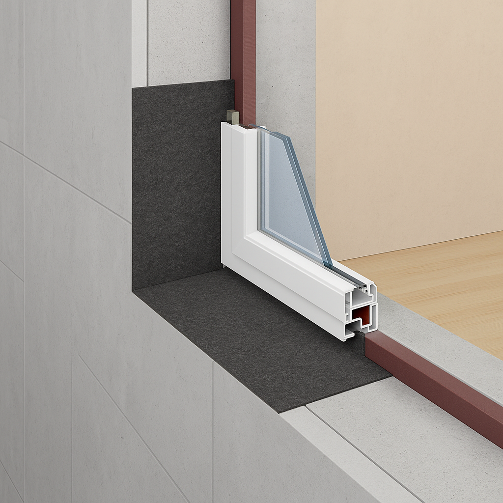 Alüminyum veya PVC doğramaların montajlandığı kör kasa ile duvar birleşimi arasında su yalıtımı sağlamak ve dışarıdan hava girişlerini engellemek için özel olarak geliştirilmiş, kendinden yapışkanlı pencere kör kasa yalıtım bandıdır.