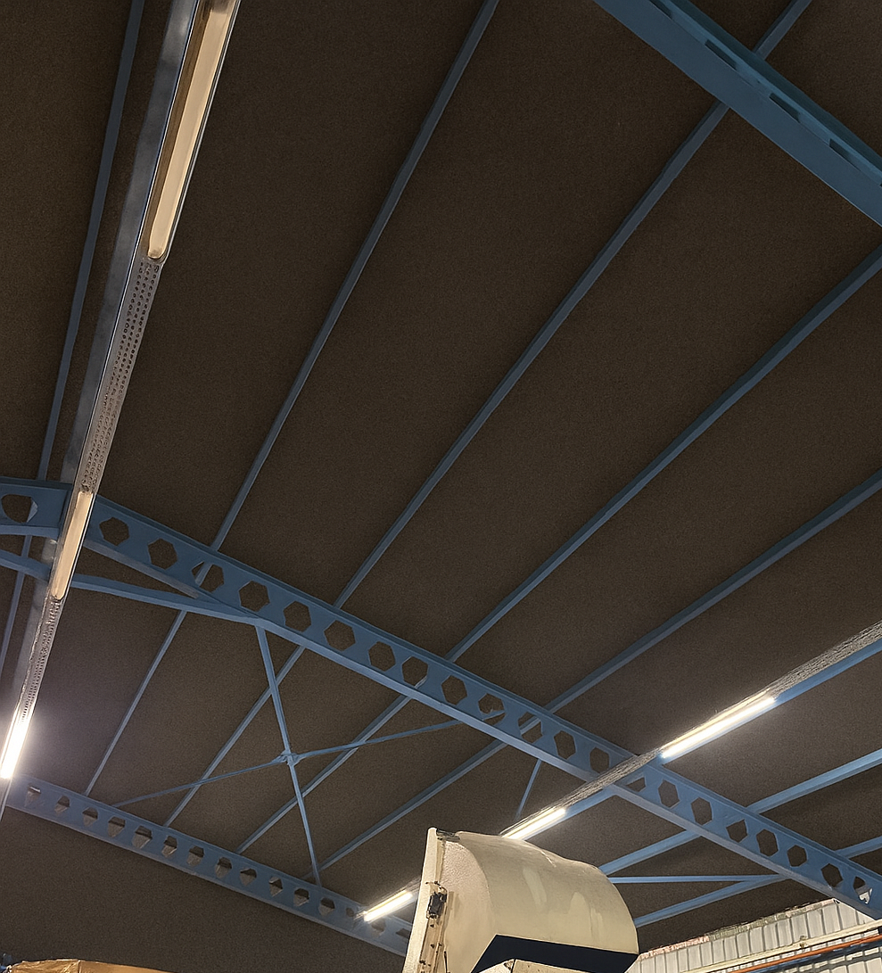 - Hazırlık: Çelik çatının iç yüzeyi temizlenir ve montaja hazır hale getirilir.