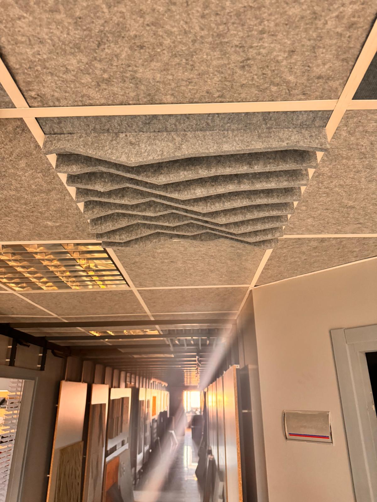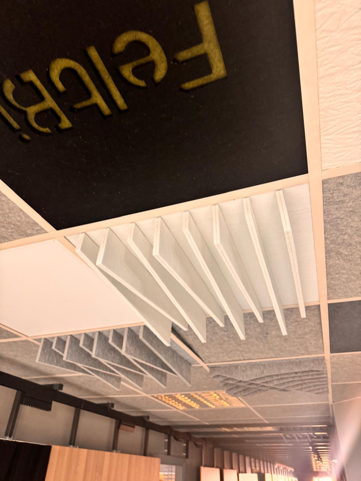 Feltbi Keçe Baffle asma tavan panelleri, genellikle yüksek tavanlı mekanlarda kullanılarak ortamın akustik performansını artırmak için tasarlanmıştır. Bu paneller, özellikle yankı, yankı süresi ve gürültü kontrolü konularında etkili çözümler sunar.