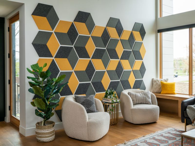 Geo akustik paneller, geometrik formların bir araya gelmesiyle estetik ve işlevselliği harmanlayan, akustik düzenleme çözümleridir. Usta gerektirmeden kolayca monte edilebilen bu paneller, yüksek ses yutumu sağlayarak mekanlarınızda sessizliğin ve estetiğin buluşmasını sağlar.